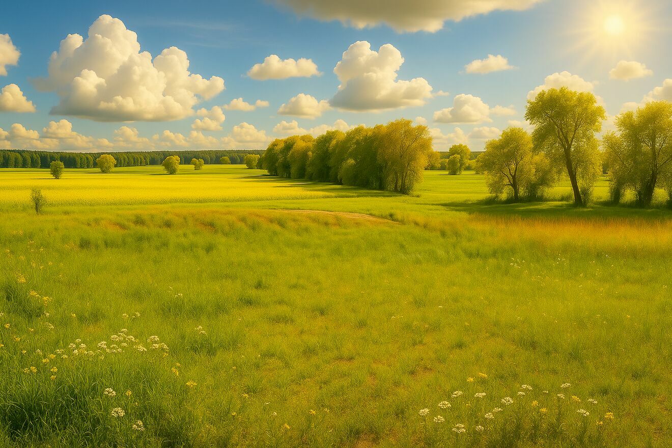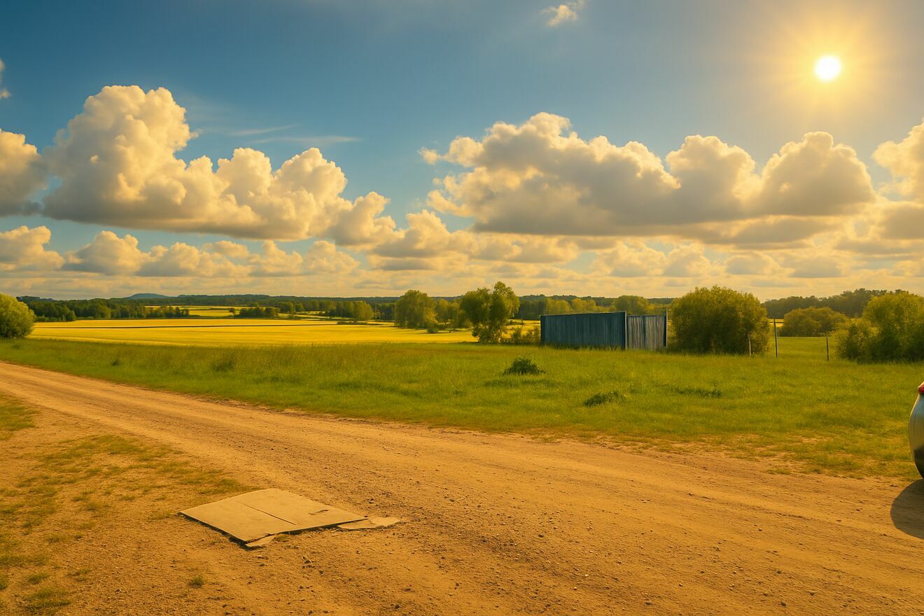 Działka znajduje się na lekkim wzniesieniu z przepięknym widokiem na okoliczne pola i lasy.